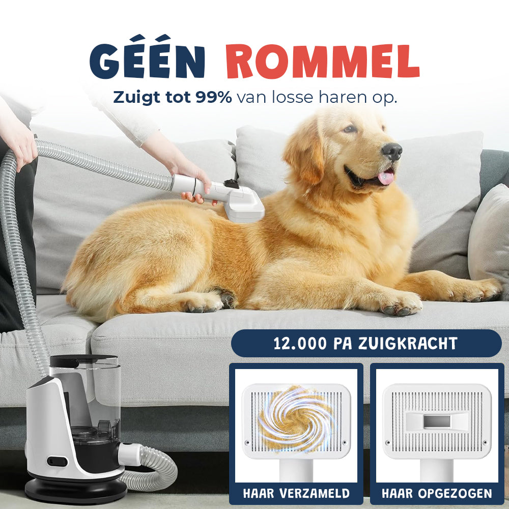 Ontdek de ultieme alles-in-één oplossing voor het trimmen, drogen en verzorgen van je hond of kat. Met een unieke geïntegreerde föhnfunctie (instelbare temperatuur van 35°C - 55°C) en krachtige zuigkracht om losse haren direct op te vangen, creëer je thuis eenvoudig een professionele trimsalon-ervaring.