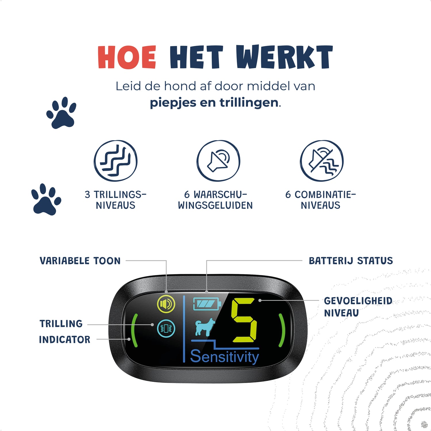 Of je hond nu hard of zacht blaft, de hooggevoelige sensor activeert direct alleen op het geluid van jouw hond en wordt niet geactiveerd door andere blaffende honden in de buurt. Dit dankzij de Smart Dog Barking Recognition Chip, die gebruik maakt van intelligente hoge-precisie blafdetectietechnologie om onbedoelde activering te voorkomen. Beginnend met een piepje, maar bij meer dan twee keer blaffen activeert het trilsysteem. Dit slimme systeem werkt geheel pijnloos, maar is storend genoeg voor jouw viervoeter om het snel te willen laten stoppen!
