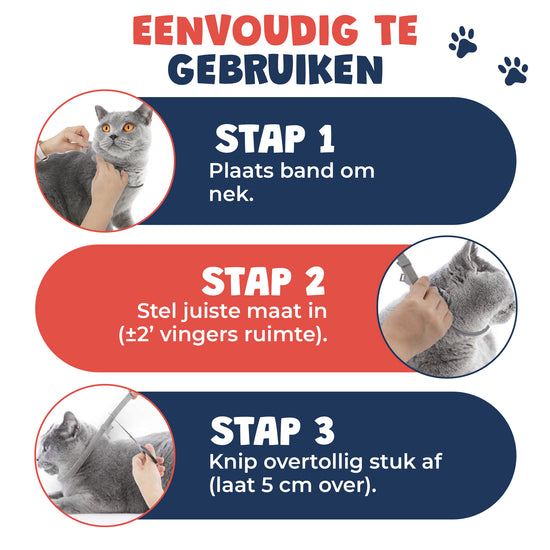 De vlooienband is geschikt voor alle katten! Het is namelijk verstelbaar en het overgebleven deel kan afgeknipt worden. LET OP! Zorg er voor dat de halsband in aanraking komt met de vacht van je huisdier, maar zorg er ook voor dat het niet te strak zit, zodat de kat nog wel ruimte heeft om te bewegen.